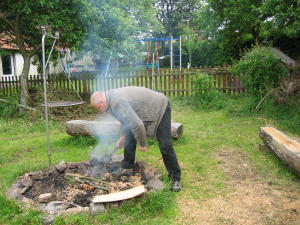 Bild 1: Ingo beim Hammerspiel mit den Hörnchen Junioren
